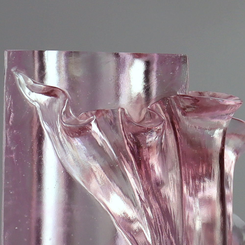 Vase en verre cristal pour compositions florales de salon ; vase d'art en verre de cristal; décoration intérieure; centre de table; «Vase à feuilles pliantes»