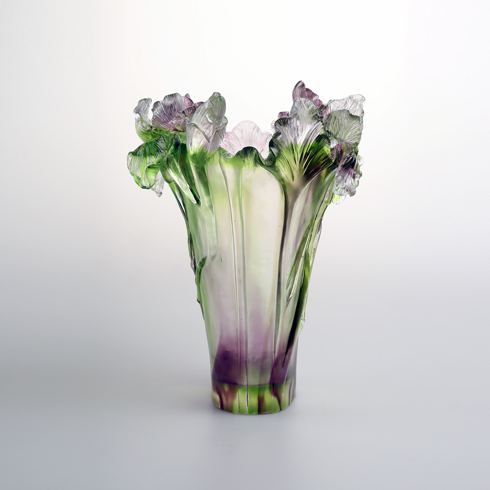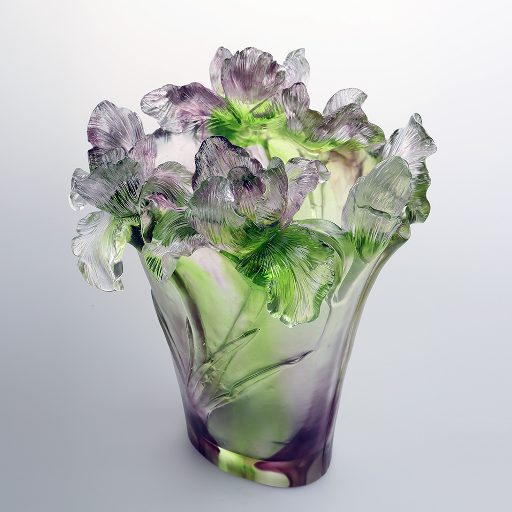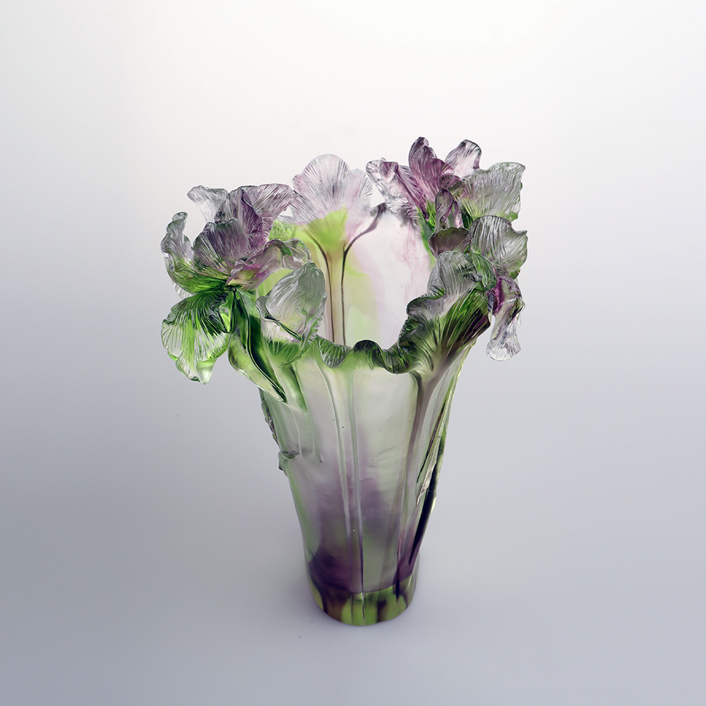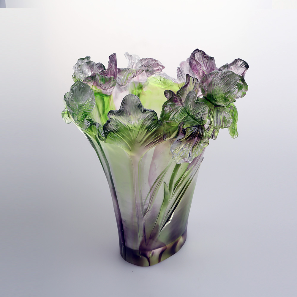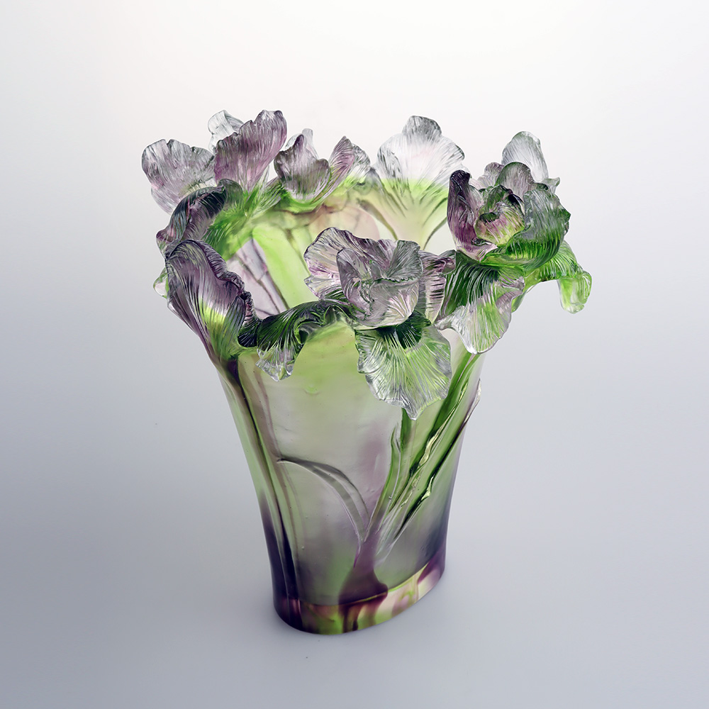 En nous inspirant de l'iris, nous cherchons à brouiller les frontières entre « nature » et « objet », permettant à l'iris qui se déploie dans la lumière du matin et aux pointes tombantes dans la brume du soir de s'épanouir éternellement avec une grâce poétique dans l'espace, à travers le verre ; de plus, grâce à la base artisanale du moulage à la cire perdue et à une philosophie de la couleur, nous transformons l’art en un « souffle de lumière » qui illumine la vie quotidienne.